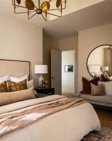 Our clients loved the vibe of Jennifer Aniston’s loft in the hit series The Morning Show. We took inspiration from the show’s bold lighting, rich tones, and luxe urban fabrics to create this chic downtown Ottawa condo.